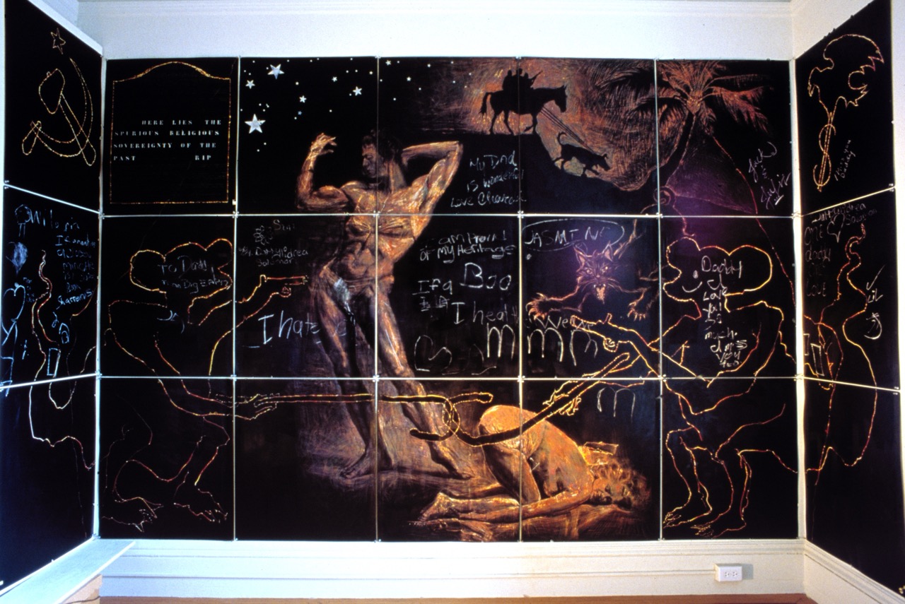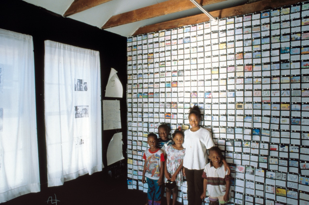 Project Row Houses, Houston. A collaboration with Dean and Juliet MacCannell. Including primed and incised reclaimed aluminum offset litho sheets, prints, flyers, curtains with press-on digital print-outs, and hundreds of drawn and written storyboards from Houston and San Francisco participants, October, 1997- March, 1998.